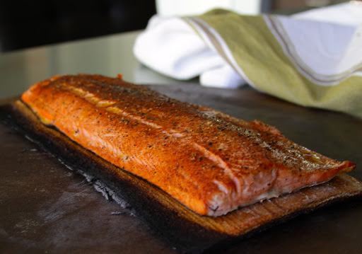 I also made this great cedar planked grilled salmon to go with it. If you’ve never grilled salmon on a cedar plank, you should definitely try it! It’s a very easy way to add wonderful, smoky flavor to salmon (or any other fish for that matter) without having to go through the trouble of using an actual smoker. Cedar planks are easily found in the grocery store these days, but I ordered a package of Cedar Grilling Planks in bulk from Amazon for a great price.