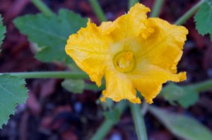 | Zucchini Squash blossom in traditional soil garden |