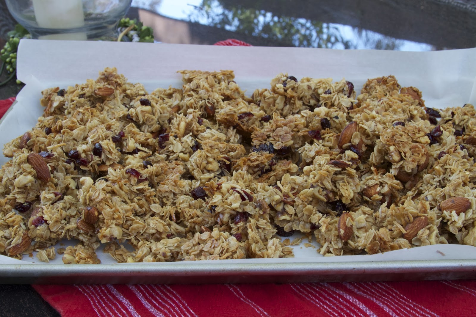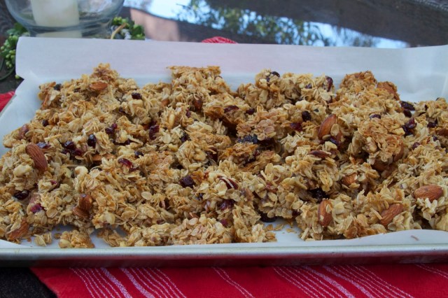 I have slightly adapted this recipe from Alexandra’s Kitchen. I did have to purchase one item that I didn’t have, shredded coconut, but everything else was in the pantry. Turns out the hardest thing about making homemade granola is the part where you need to leave it undisturbed to cool for one whole hour!