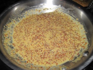 Melt the butter in a small saucepan, then add the mustard, vermouth, salt and pepper and whisk together.