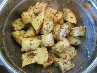 1 1/2 cups cubed stale bread. I used some leftover homemade bread that I saved and froze for this purpose