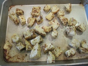 These croutons are amazing! I adapted this recipe from Alexandra’s Kitchen: