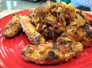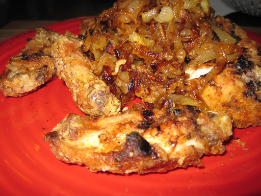 To make the caramelized onions, simply slice a sweet onion and add to a pan with two tablespoons of olive oil. Cook for 5 to 7 minutes until the onions begin to soften. Add ground black pepper and a pinch of salt and continue cooking over medium-low heat for approximately 45 minutes. I like to add a few splashes of Chipotle Tabasco sauce to the onions when they are nice and brown and completely caramelized. Serve with the chicken wings!