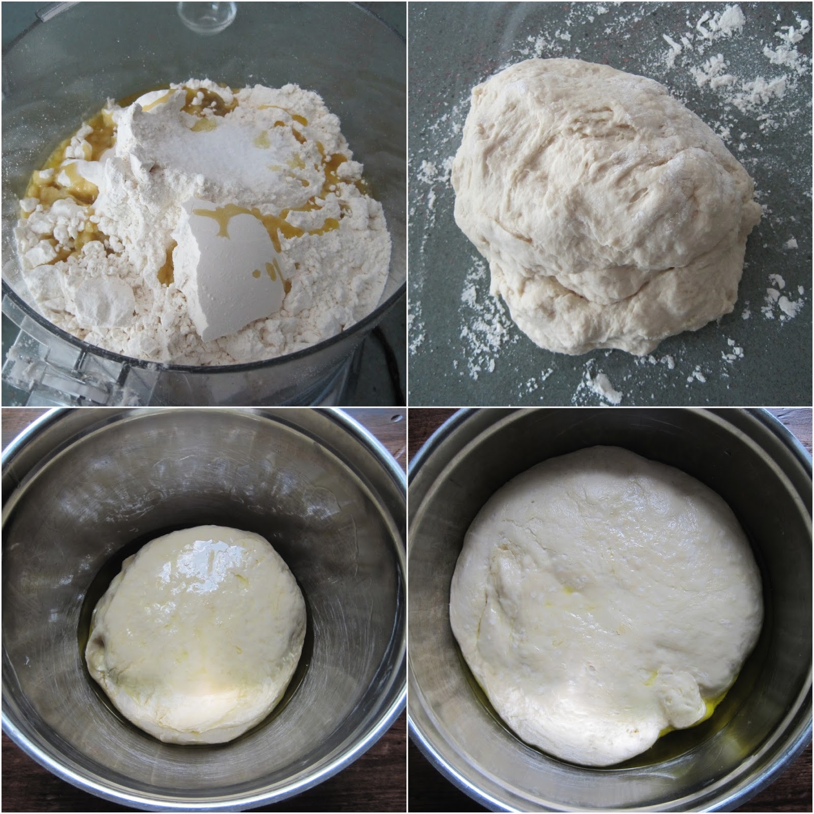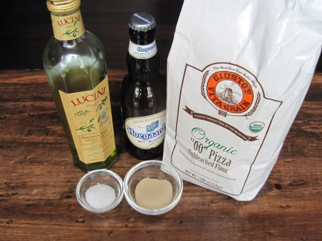 Mix the yeast into the warm water in a small mixing bowl. Combine the flour, salt and olive oil in a mixing bowl and slowly incorporate the liquid, using additional flour if needed. Knead the dough for 7 to 8 minutes. I used my Cuisinart food processor to do this and it takes considerably less time. I placed the flour, salt and olive oil in the bowl of the food processor outfitted with the dough blade. Turn on the dough setting and pulse until the dry ingredients are mixed. Turn the machine on the dough setting and slowly pour the beer and the yeast and warm water mixture into the feed tube. When the dough cleans the sides of the bowl, continue to knead for 30 additional seconds. Remove the dough from the food processor (or stand mixer if you have it) and quickly roll into a ball.