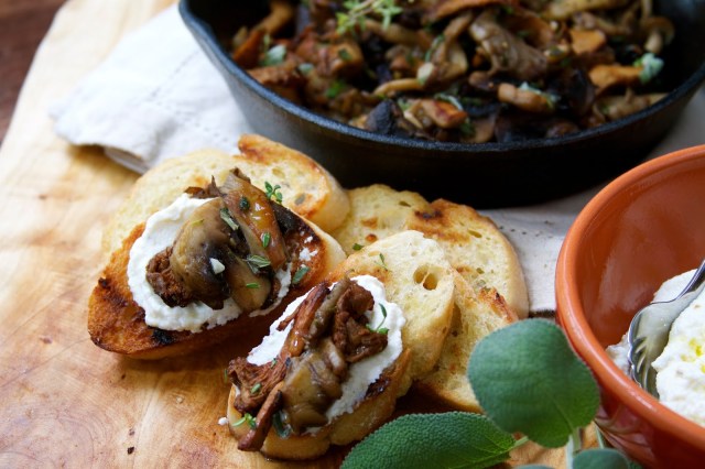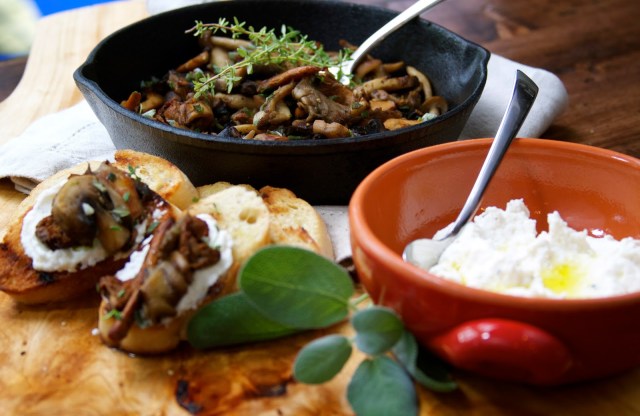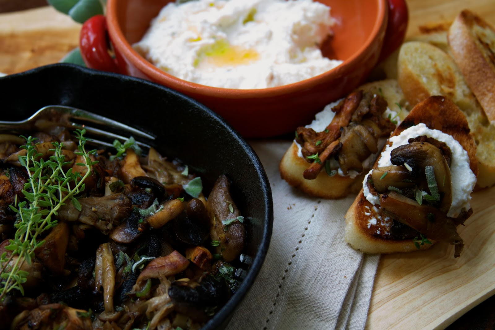 These mushrooms are excellent served with slices of baguette that have been drizzled with olive oil and grilled and then topped with a dollop of ricotta cheese!