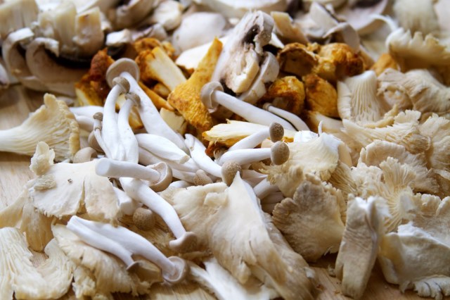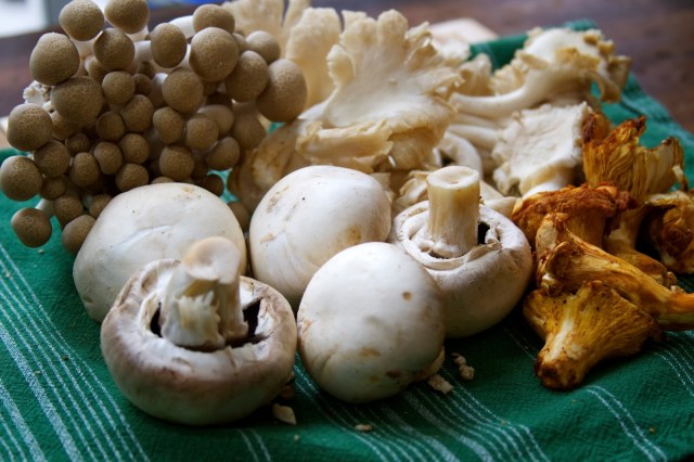 Of course, Oregon is known for its rich variety of forest mushrooms that might not necessarily be available locally, but I was determined to reinterpret this dish using mushrooms that are readily available at our local grocery store. I used a combination of white mushrooms, oyster mushrooms, beech mushrooms and chanterelles. I only bought a small handful of the chanterelles, because they are expensive: $19.99 per pound!