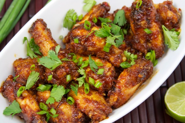 Serve with fresh cilantro, lime wedges and chopped scallions and then gloat in the knowledge that you just made wings better than any takeout wing restaurant!
