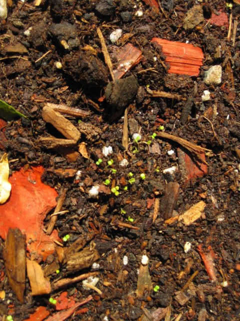 I had to look really hard to see them, but some lettuces are poking their heads through as well!