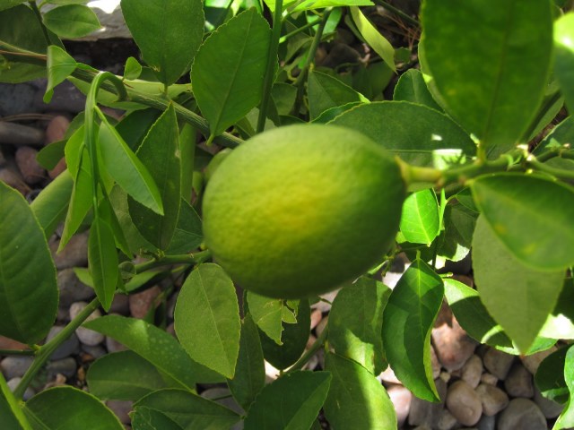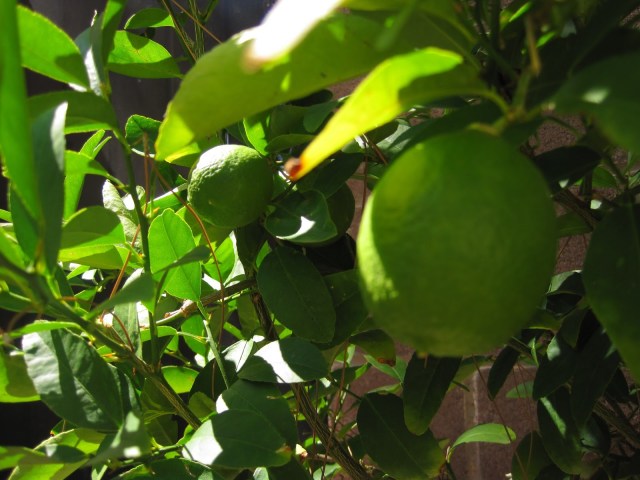 Also, this year is the first year that our two year old Mexican Lime tree has borne fruit! There are quite a few on this tree as well, and I expect they will be ripening very soon. I just picked one the other day out of sheer excitement!
