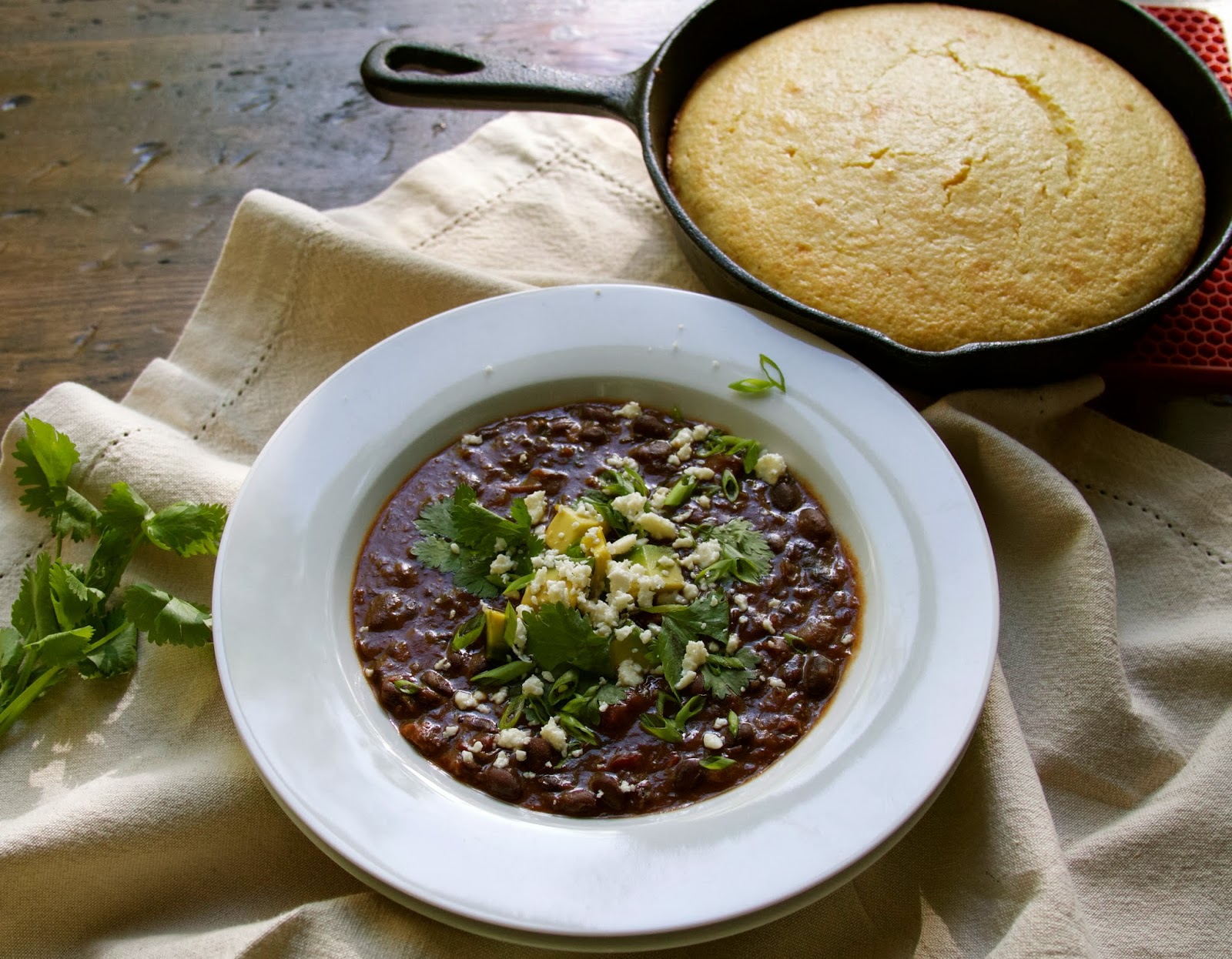 The soup has a spicy, smoky chipotle flavor due to the addition of canned chipotle peppers in adobo sauce. This can be found in the grocery store in the ethnic or Mexican food aisle. Chipotle peppers are smoked jalapeño peppers. They have heat, but in my opinion, they are not so fiery hot so that you need a glass of milk to go with your bowl of soup. They have a smoky, earthiness that really pairs well with black beans.