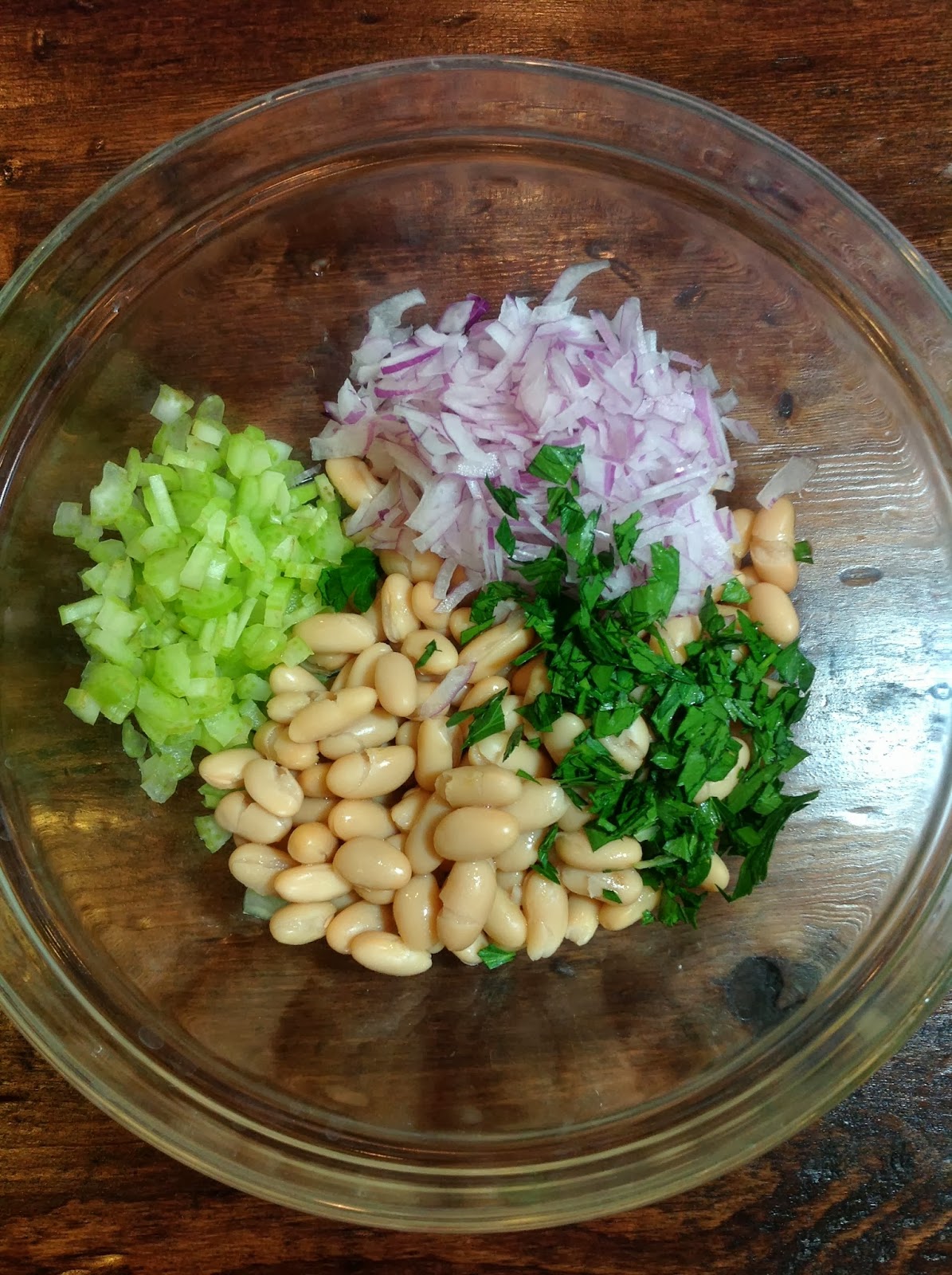 2. In a medium bowl, combine the beans, celery, onion and parsley.