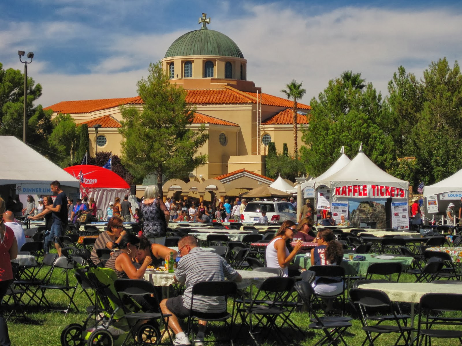 The next day we headed to the Greek Food Festival. This year was the 41st year that the Festival has taken place and I’ve lived here for 25 of those years and had never been to it! Shame on me! The event took place on the grounds of St. John the Baptist Greek Orthodox Church and there was live music, carnival rides, and lots and lots of delicious food!