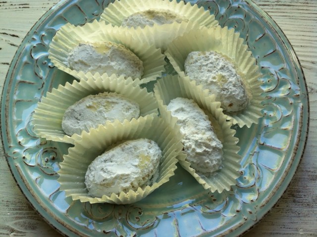 We have received and given tins of Christmas cookies made by the Ladies Philoptochos society from St. John the Baptist Church and they are incredible! I tried to bribe this lovely lady into giving me the recipe for my favorite treat: kourambiedes. She wasn’t budging, though. I guess I’ll have to learn to make these myself because they aren’t going to last much longer at the rate I’m eating them!