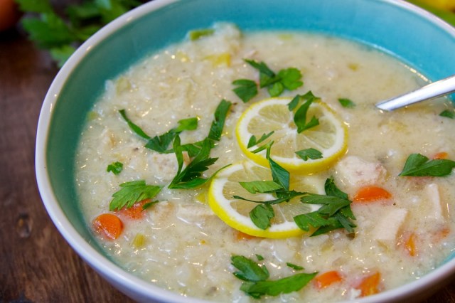 In a medium sized bowl, whisk together the eggs and the lemon juice. You will need to temper the egg mixture before adding it to the pot of soup by slowly adding two ladlefuls of the hot broth to the egg mixture while continuing to stir. After the egg mixture has combined with the hot broth, add the egg mixture to the pot of soup and stir until well-blended. Add the remaining 1/2 teaspoon of salt if needed. Simmer for about 5 minutes more and garnish with chopped parsley and some additional chopped oregano if desired.