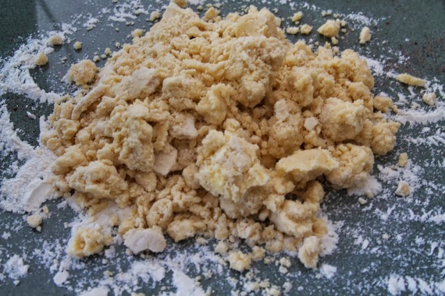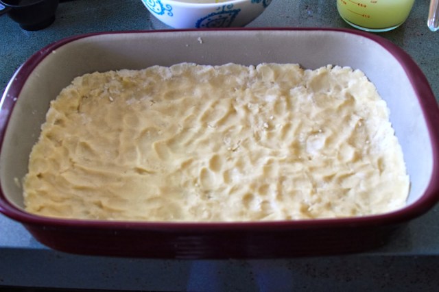 2. Dump the mixture onto a floured board or clean countertop. Press the mixture into a ball with your hands and then flatten into a 9x13x2 baking dish.