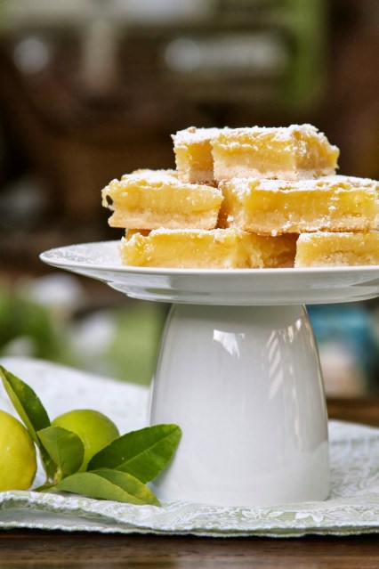 Over the past two years we have planted a few dwarf citrus trees in our backyard: Eureka lemon, Meyer lemon, blood orange and a key lime tree. They are still young at this point and I cannot wait until they are all bearing fruit! I’ve had this Barefoot Contessa recipe for Lemon Bars on my Pinterest board for months, just waiting for that glorious day when the Meyer lemons on my little tree finally ripen (likely some time in December). But, it so happened that the key limes ripened first, and boy are they wonderful! They are super juicy and subtly sweeter than conventional limes. They are also pretty large compared to the key limes I usually find at the grocery store–these are almost the size of medium-sized lemons. So, since life gave us key limes and not lemons, I decided to see if I could use limes in the recipe instead and it worked!