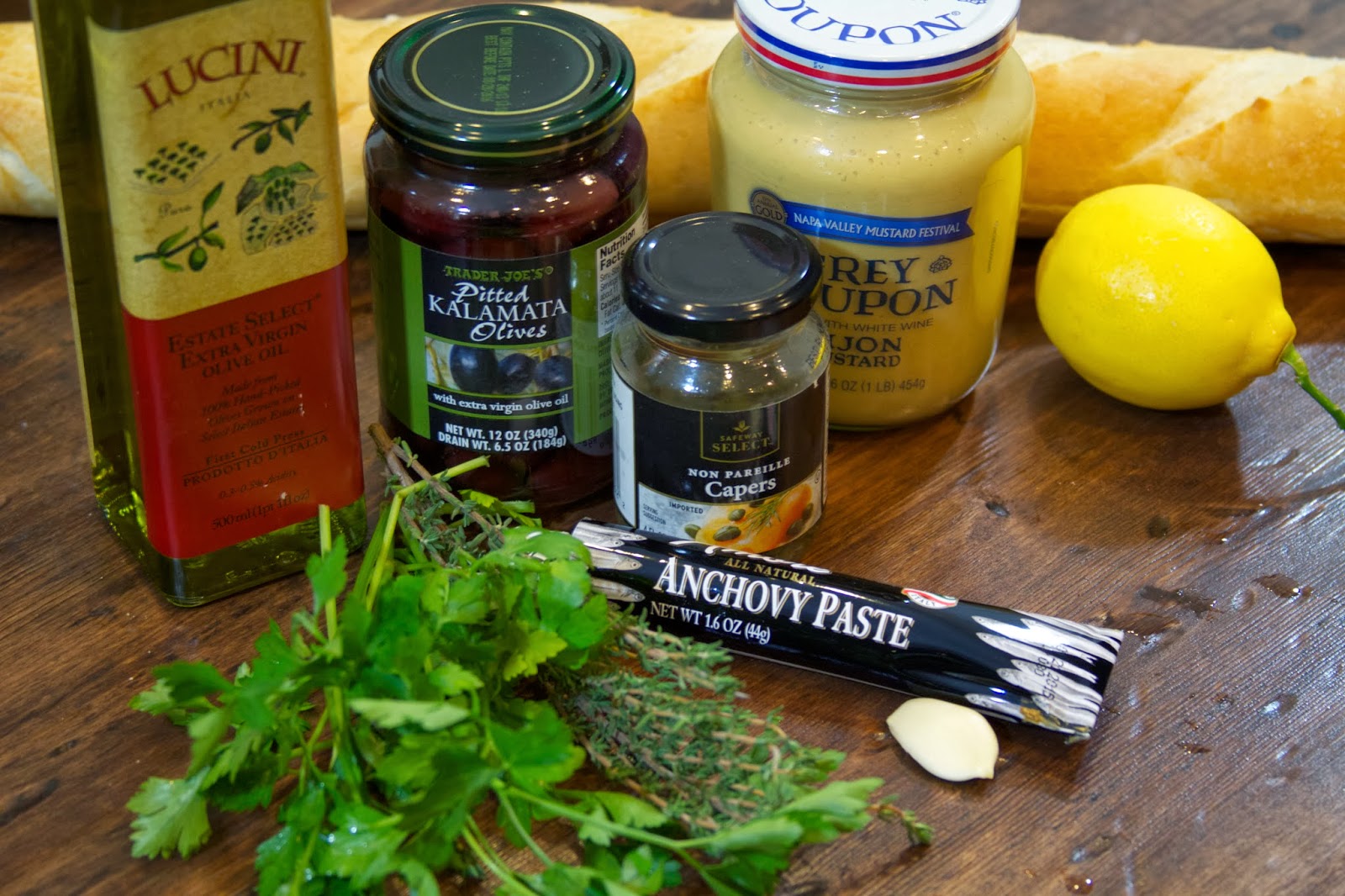 2. Add the lemon juice, dijon mustard, thyme, parsley and olive oil and pulse five or six more time until combined and the mixture is chunky. Spoon the mixture into a bowl and set aside to allow the flavors to mingle.
