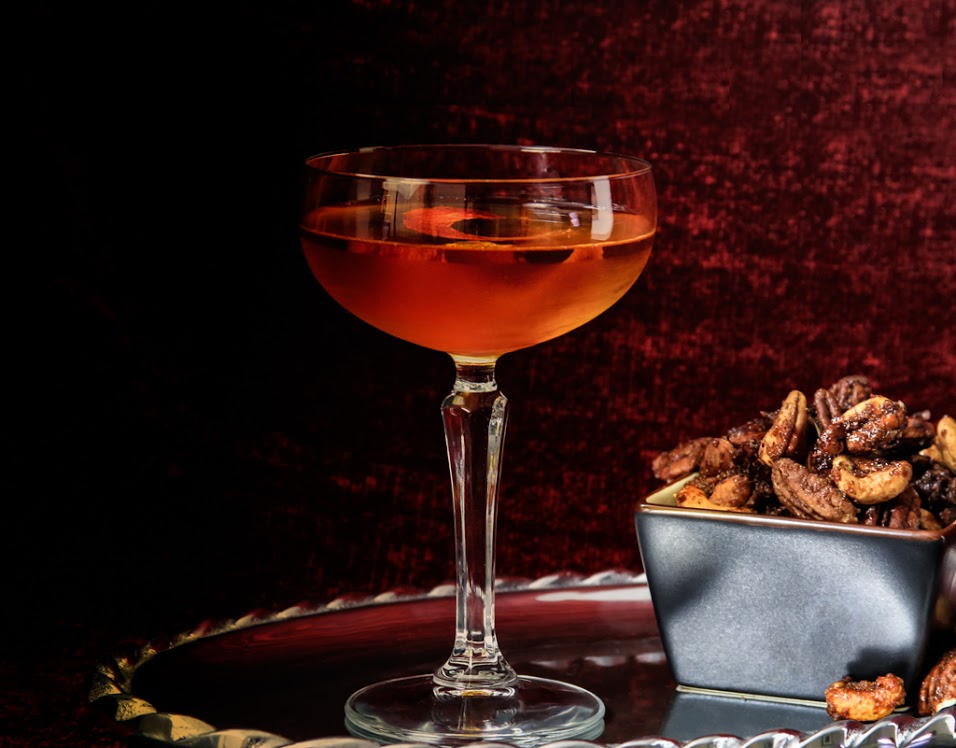 Combine all of the ingredients except for the orange twist in a mixing glass filled with ice. Stir until chilled, then strain into a coupe glass. With a vegetable peeler or zester, remove a strip of zest from an orange or lemon. Twist the peel over the drink to allow the oils from the citrus to fall into the glass.