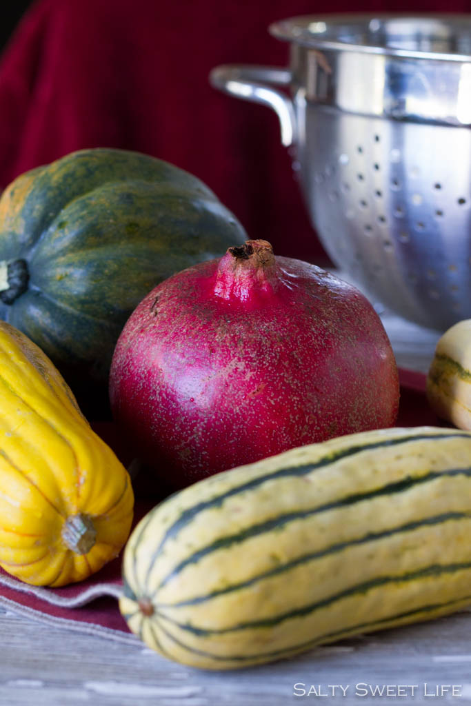Eggplant disasters aside, I am no stranger to vegetarian cooking and I’ve been a vegetarian and a vegan at different points in my life. So, with October being Vegetarian Awareness Month, I want to be mindful of incorporating more meatless meals into our weekly rotation. Let me be completely honest–I won’t be giving up meat entirely in October. I love my veggies, but I also love meat and October is just too full of fun ways to eat it! I’m not so sure I want to pass up chilies, stews and bratwursts this time of year! Now that it’s starting to cool down, I’m beginning to crave more sturdy vegetables–root vegetables, kale, Brussels sprouts, for example; and lately, I’ve been majorly crushing on Delicata Squash.