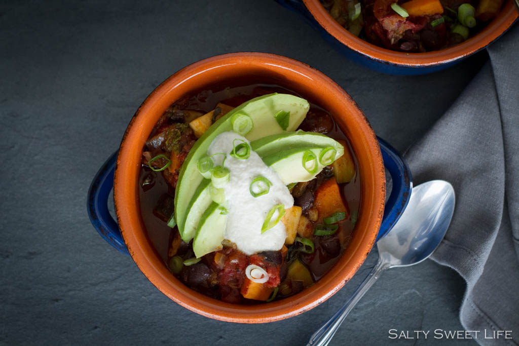 Smoky Chipotle Vegan Chili with Cashew Cream - Salty Sweet Life