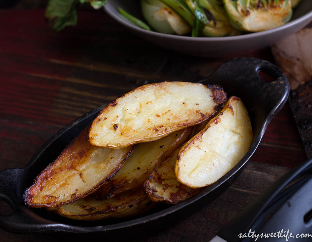 In same way that a pesto made in a mortar and pestle has a fuller, richer flavor than when made in a food processor, guacamole made in a molcajete is its bolder south-of-the-border cousin! Because I’m not your abuela, I’m sure I didn’t go about this in a traditional fashion–for one thing, I just piled everything in the mortar at the same time instead of systematically grinding the ingredients in steps. You’ll also notice the absence of tomatoes. I hope you don’t beat me up too much for taking such license, but I know that once you taste it, you will forgive me! This guacamole begins with onion, garlic and jalapeño peppers, roasted on the grill until the onion is lightly charred and sweet, the garlic, tender and the peppers, tempered and smoky. This is the magic–the key step that makes this guacamole special and gives it that smokiness. Then those ingredients are added to ripe avocados, a generous squeeze of fresh lime and cilantro and pounded until they meld into this most fabulous amalgam. Sweet. Smoke. Spice. Acid. Seriously, this is the only guacamole recipe you’ll need.