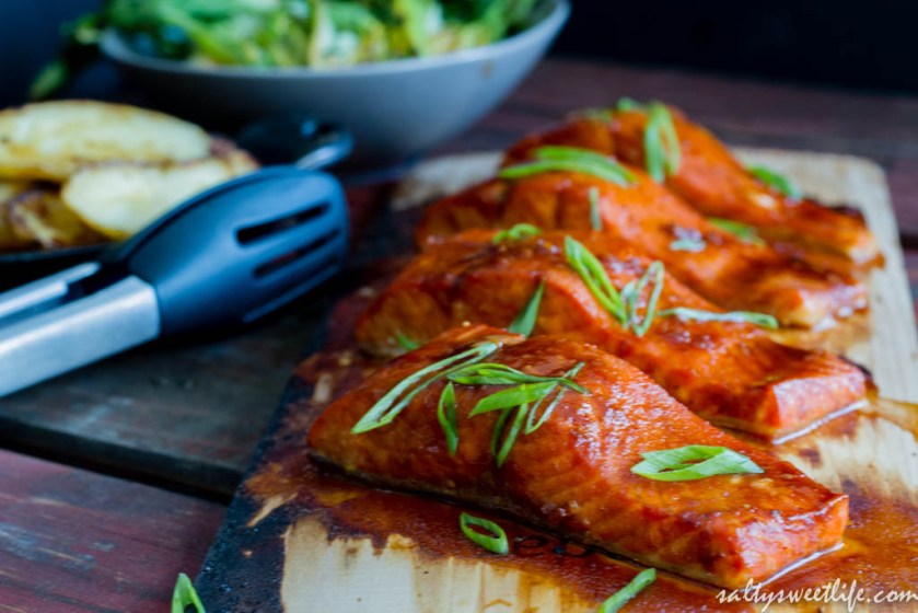 Cedar Planked Salmon with Sriracha-Ponzu Glaze